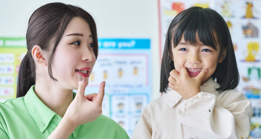 きれいな発音を簡単に習得できるソルマーク式PRCメソッドを導入。手や指の簡単な動きで発音イメージを掴み、口や舌の適切な動かし方を身につけていきます。小さなお子さまでも覚えやすいため、自然と正しい英語発音を習得することができます。