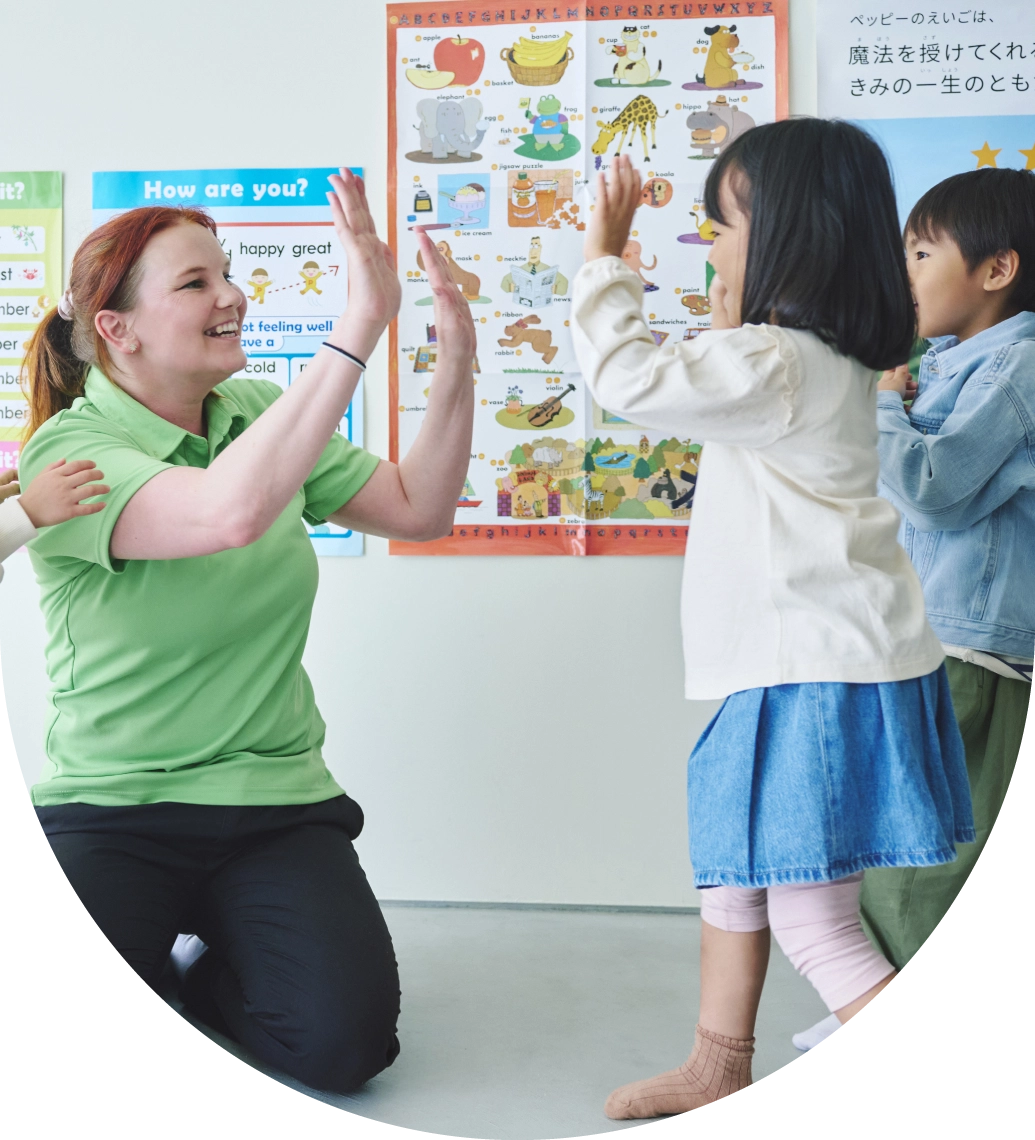 ペッピーキッズクラブのレッスンは、年齢に合わせて歌・リズム遊び・ゲームなど楽しさいっぱいなので、初めてのお子さまでも無理なく英語の世界に入れます。